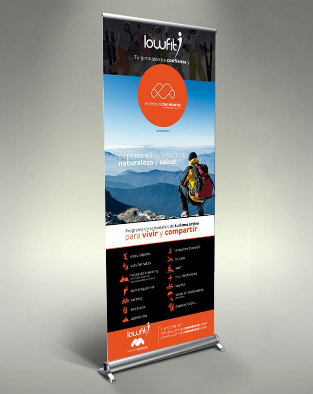 RollUp en gran formato de promoción para la empresa de aventura MONTARAZ.