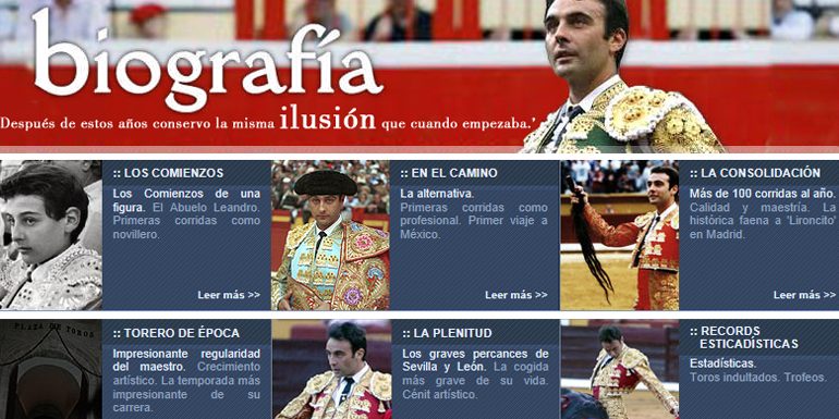 SMACK! en colaboración con Imágora consultores y Toromedia comunicación integral diseñó y desarrolló la página web del conocido matador de toros Enrique Ponce.