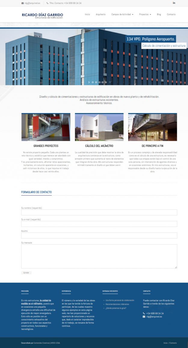Página Web para el arquitecto RICARDO DÍAZ, www.ricardodiazestructuras.com